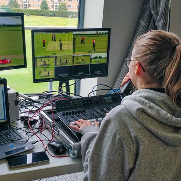 Cameras, lighting and tech. Can be found on the sidelines of the rugby pitch at the AJ Bell.